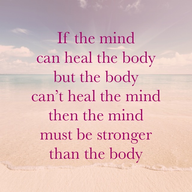 But, you see, I don’t necessarily see myself as inspiring, I see it as a choice. It was no big decision to be this way, to think like this, it just happened and it was simple to me. I chose to use my powerful mind, which is far more equipped than any computer, to overcome the physical ailment in my body. And I know I’m not free of cancer yet….oh, but I will be. What other option is there? Why would I lie down and decide that this is my lot, that it’s ‘curtains’ for me? I’m too young. Mid 40’s is no age to die!